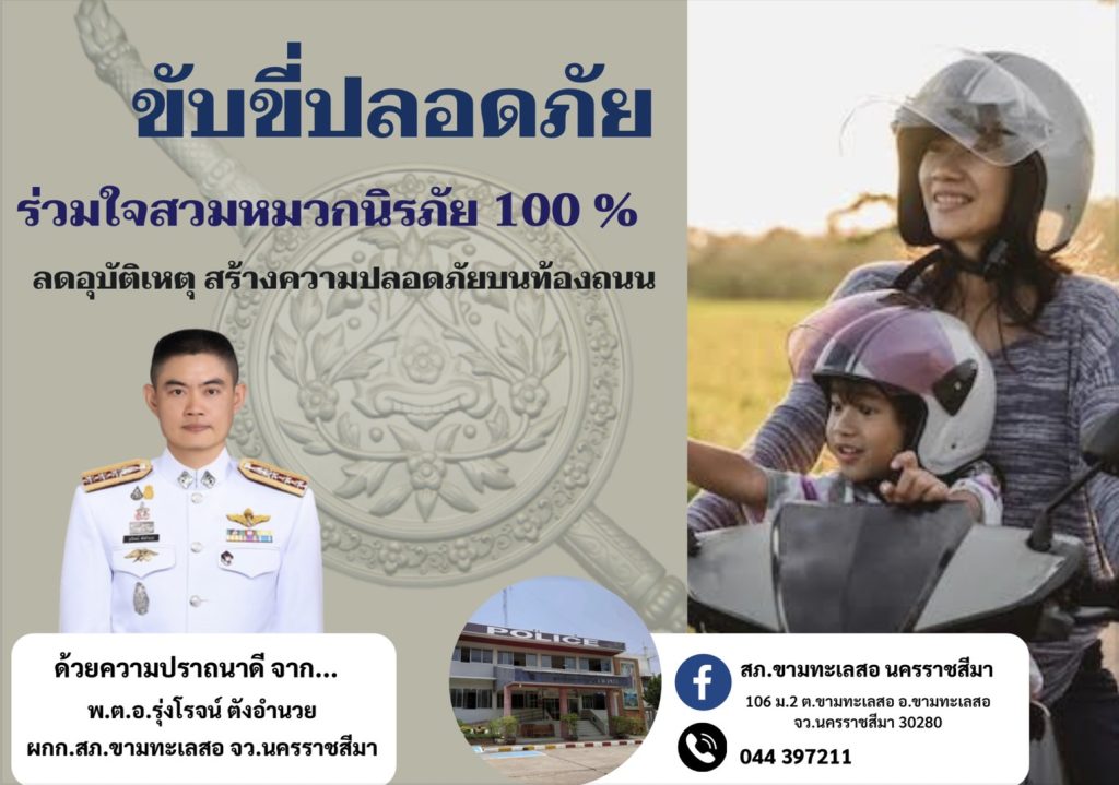 สภ.ขามทะเลสอ รณรงค์ขับขี่ปลอดภัย สวมหมวกนิรภัย 100%