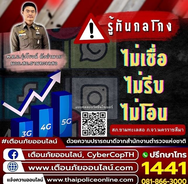 สภ.ขามทะเลสอ เชิญชวนพี่น้องประชาชน ร่วมทำแบบทดสอบ วัคซีนไซเบอร์