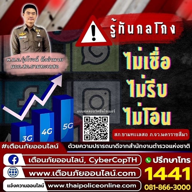 สภ.ขามทะเลสอ เชิญชวนพี่น้องประชาชน ร่วมทำแบบทดสอบ วัคซีนไซเบอร์ (ป้องกันการถูกหลอกจากมิจฉาชีพ) เข้าท