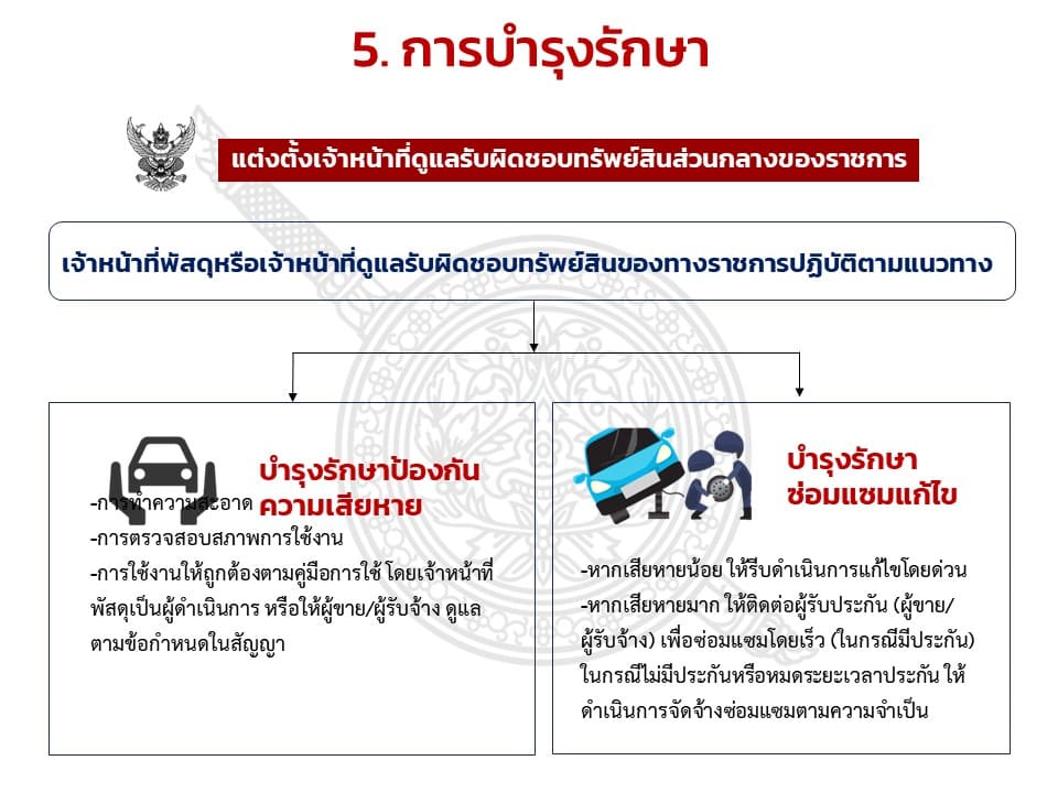 5. แนวทางการเผยแพร่หรือเสริมสร้างความรู้ ความเข้าใจให้เจ้าหน้าที่สามารถใช้ทรัพย์สินของราชการและของบริจาคได้อย่างถูกต้อง