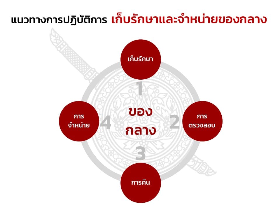 กำหนดแนวทางการควบคุม กำกับดูแลรักษา ตรวจนับ ตรวจสอบสภาพการใช้งานทรัพย์สินของราชการและของบริจาค